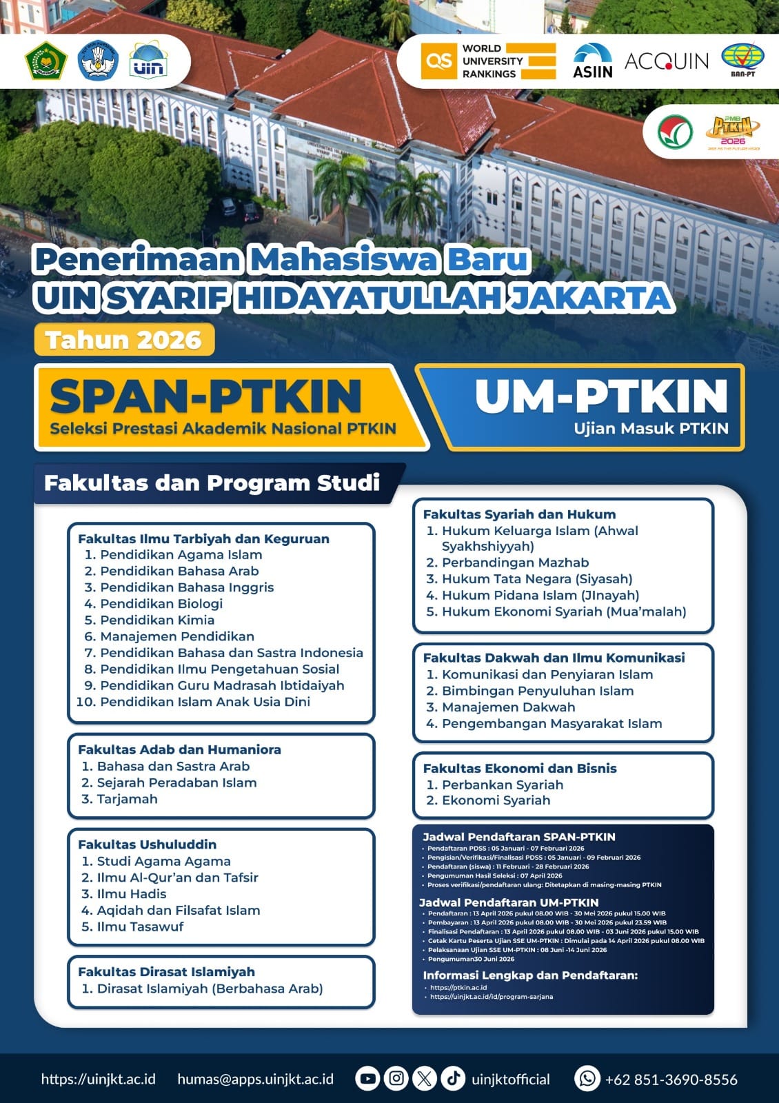 Universitas Islam Negeri Syarif Hidayatullah Jakarta membuka kesempatan bagi calon mahasiswa baru melalui jalur UM-PTKIN tahun 2026 dengan menawarkan 30 program studi unggulan.