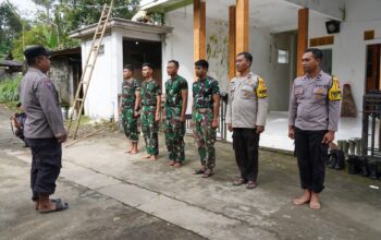 Anggota TNI bersama warga setempat tampak bahu-membahu melaksanakan pengecoran, mulai dari pengangkutan material hingga perataan adukan semen. Semangat gotong royong yang terjalin menunjukkan kuatnya kemanunggalan TNI dan rakyat dalam mendukung percepatan pembangunan di wilayah pedesaan.