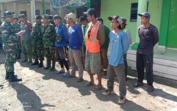 Sejumlah personel TNI bersama unsur Pemerintah dan Masyarakat terlihat melakukan kegiatan gotong royong dalam rangka Karya Bakti (Karbak) yang dipimpin langsung oleh Dandim 0418/Palembang Letkol Arh Erik Novianto, S.Sos