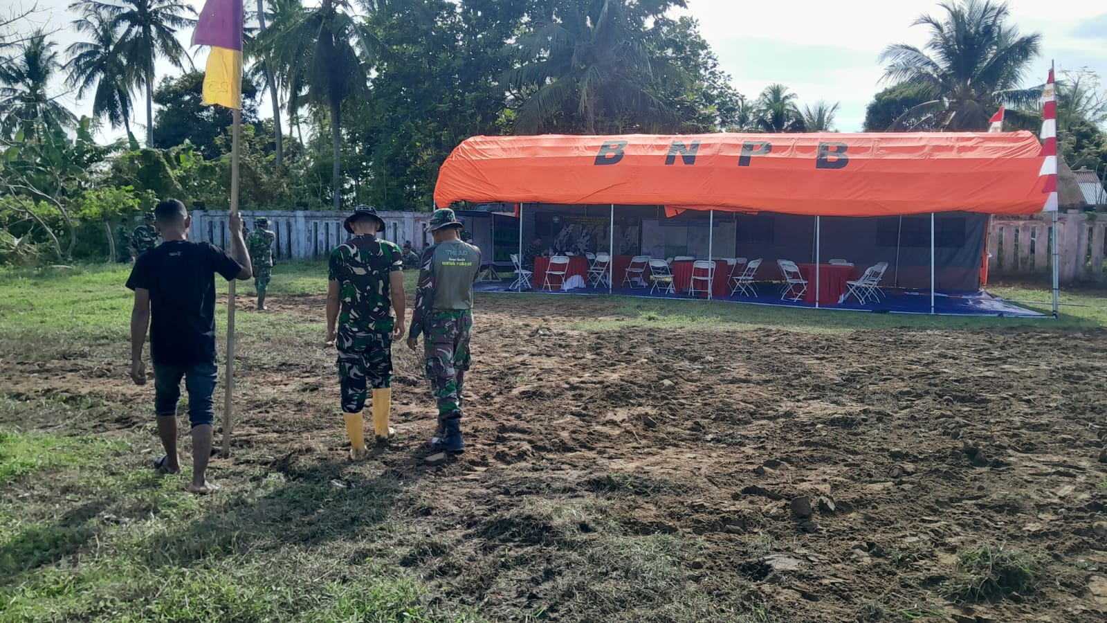 Dalam pelaksanaannya, kegiatan pembersihan didukung dengan satu unit alat berat jenis beko bantuan dari Badan Nasional Penanggulangan Bencana (BNPB). Alat berat tersebut digunakan untuk meratakan dan membersihkan lahan agar siap digunakan sebagai area pembangunan.