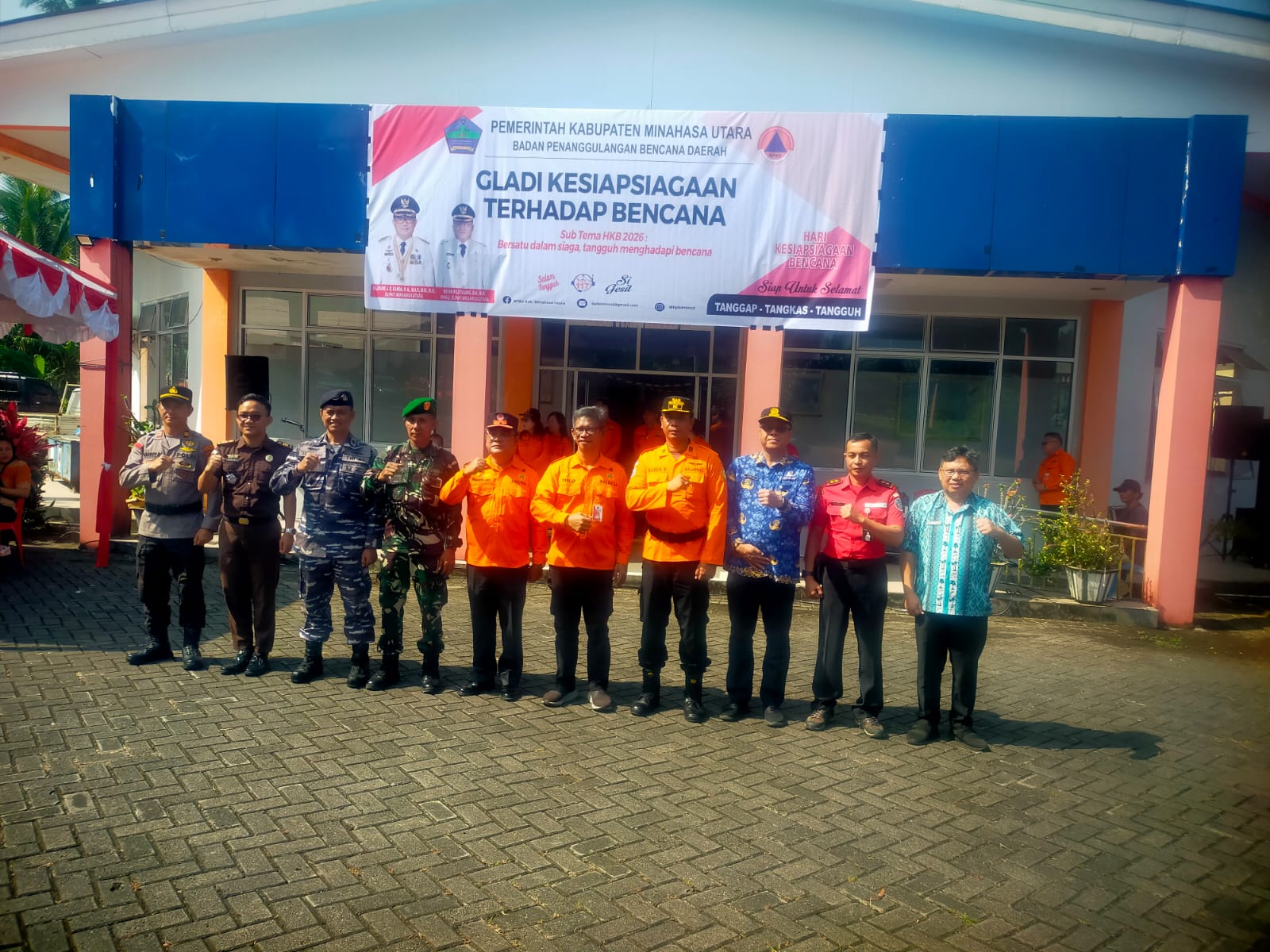 Apel Geladi Kesiapsiagaan Bencana dipimpin Asisten 1 Pemkab Minut Bpk. Umbase Mayuntu, S.Sos., M.Si. dengan membacakan amanat Bupati Minahasa Utara, yang menyampaikan bahwa Apel Geladi Kesiapsiagaan Bencana di Minahasa Utara, digelar berdasarkan Undang-undang No 24 tahun 2007 tentang penanggulangan bencana. Pasal 8 berisi tentang tanggung jawab pemerintah daerah dalam menyelenggarakan penanggulangan bencana meliputi, Penjaminan pemenuhan hak masyarakat dan pengungsi yang terkena bencana; Perlindungan masyarakat dari dampak bencana; Pengurangan risiko bencana