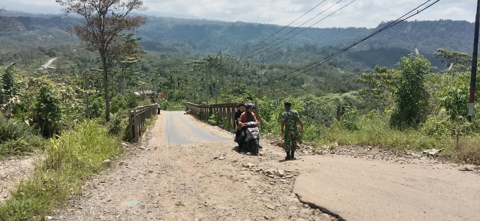 Di sepanjang jalur yang menjadi akses penting warga, Babinsa tampak menyusuri badan jalan sambil memperhatikan kondisi di lapangan. Ia memastikan tidak ada hambatan yang dapat mengganggu kelancaran kendaraan yang melintas.