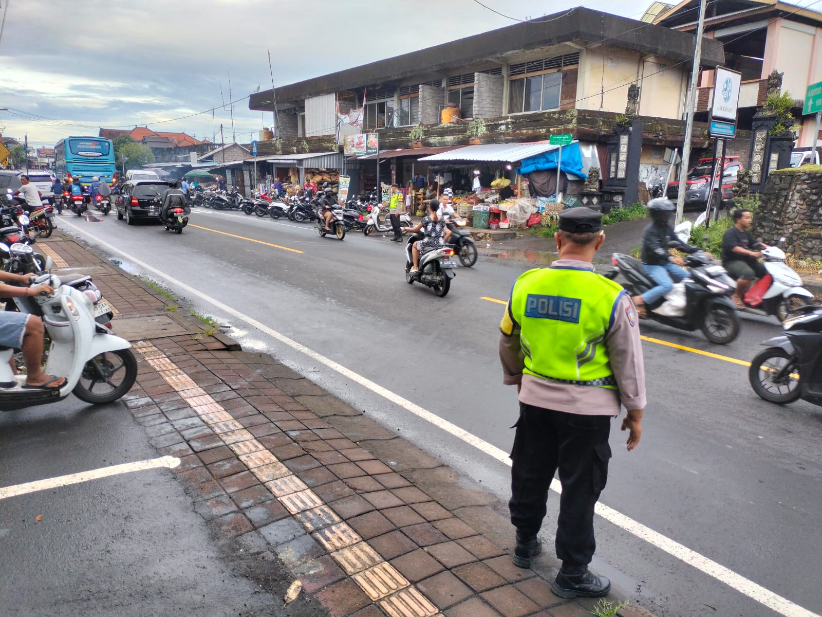 Polsek Selemadeg. Mengantisipasi lonjakan aktivitas Masyarakat, Personel Polsek Selemadeg, melaksanakan pengaturan lalu lintas (Strong Point) di Simpang Pasar Bajera, Selasa (31/3/2026) pagi. Langkah ini diambil untuk menjamin Kamseltibcar Lantas dan mengurai titik keramaian guna mencegah potensi kemacetan serta kecelakaan bagi warga yang memulai aktivitas menuju pasar, kantor dan sekolah.