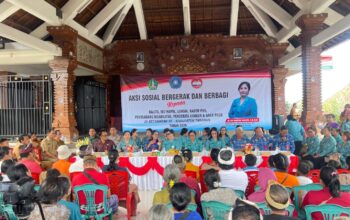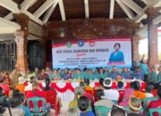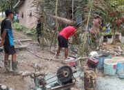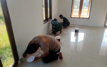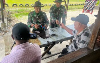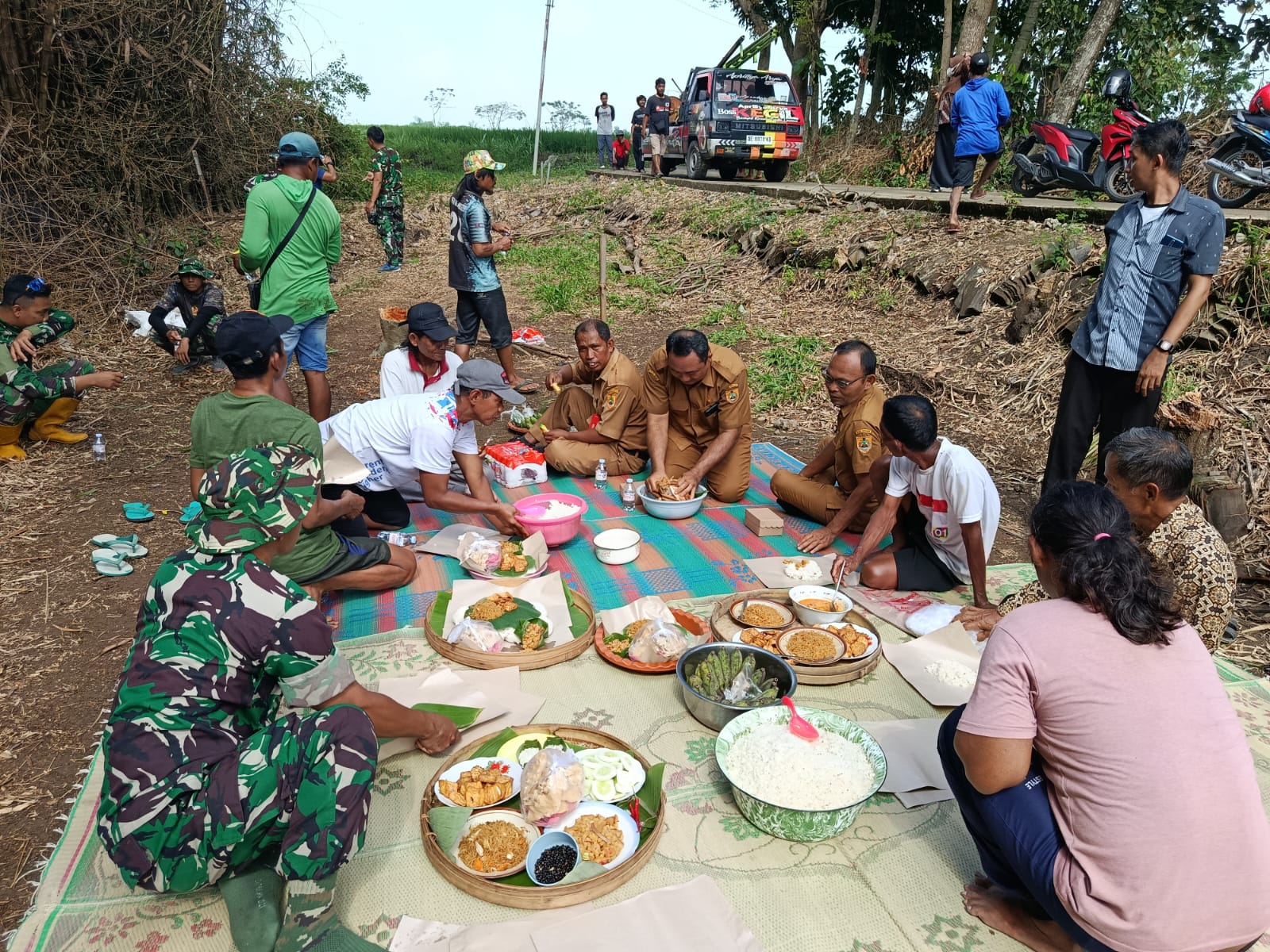 TNI dan warga duduk melingkar bersila dengan beralaskan tikar, ditengahnya terdapat tumpeng dengan lauk pauk bermacam macam, kemudian Sholikin salah satu tokoh masyarakat memimpin doa dan memohon keselamatan kepada Tuhan YME. Selasa, 28/04/2026.