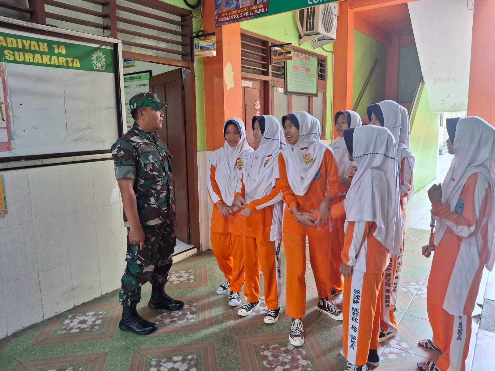 Babinsa Danukusuman Koramil 03 Serengan Kodim 0735 Surakarta Serda Tito memberikan pengarahan dan motivasi kepada para siswa siswi SMP Muhammadiyah 8 Surakarta Jl. Sri Kuncoro No. 12 Danukusuman Serengan Kota Surakarta, Selasa Pukul 08.00 WIB (21/10/2025)