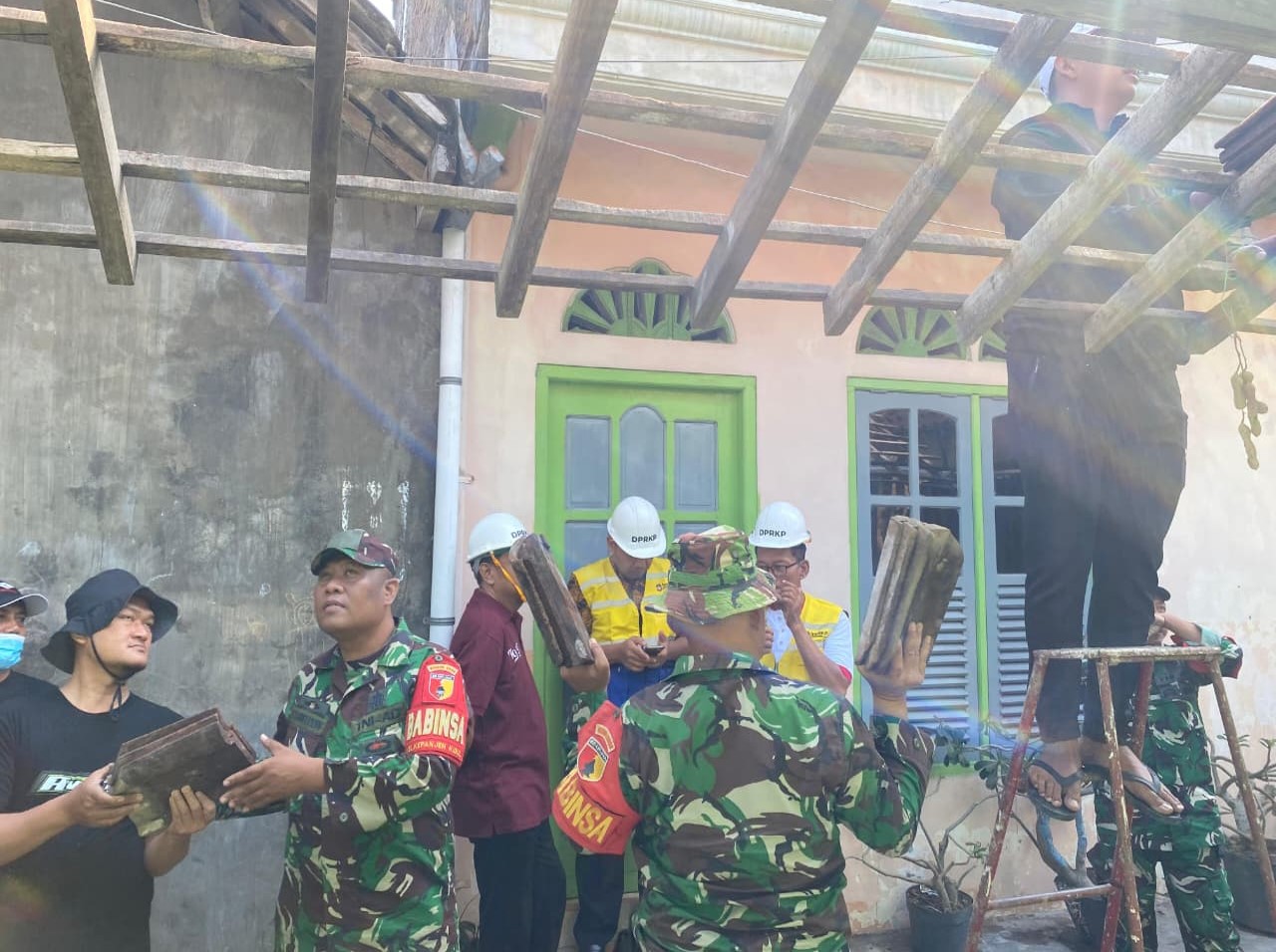 Babinsa Kelurahan Kepanjenkidul Koramil 0808/01 Sukorejo Sertu Didik Subiantoro bersama warga melaksanakan kegiatan gotong royong membantu renovasi rumah milik Bapak Subagio. Kegiatan tersebut berupa pembongkaran atap rumah yang berlokasi di Jl. Srigading RT. 01 RW. 02 Kelurahan Kepanjenkidul Kecamatan Kepanjenkidul Kota Blitar, Jumat (26/12/2025).
