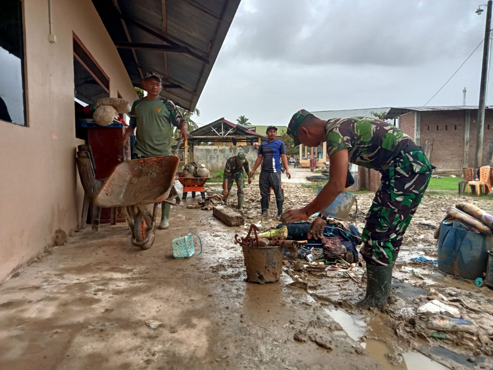 Karya bakti dipimpin oleh Pelda Misliman mewakili Danramil 18/Bkb dan melibatkan anggota Koramil, kepala sekolah, serta dewan guru. Sejak pagi, personel TNI bersama pihak sekolah bahu-membahu membersihkan area sekolah guna mempercepat pemulihan lingkungan belajar.