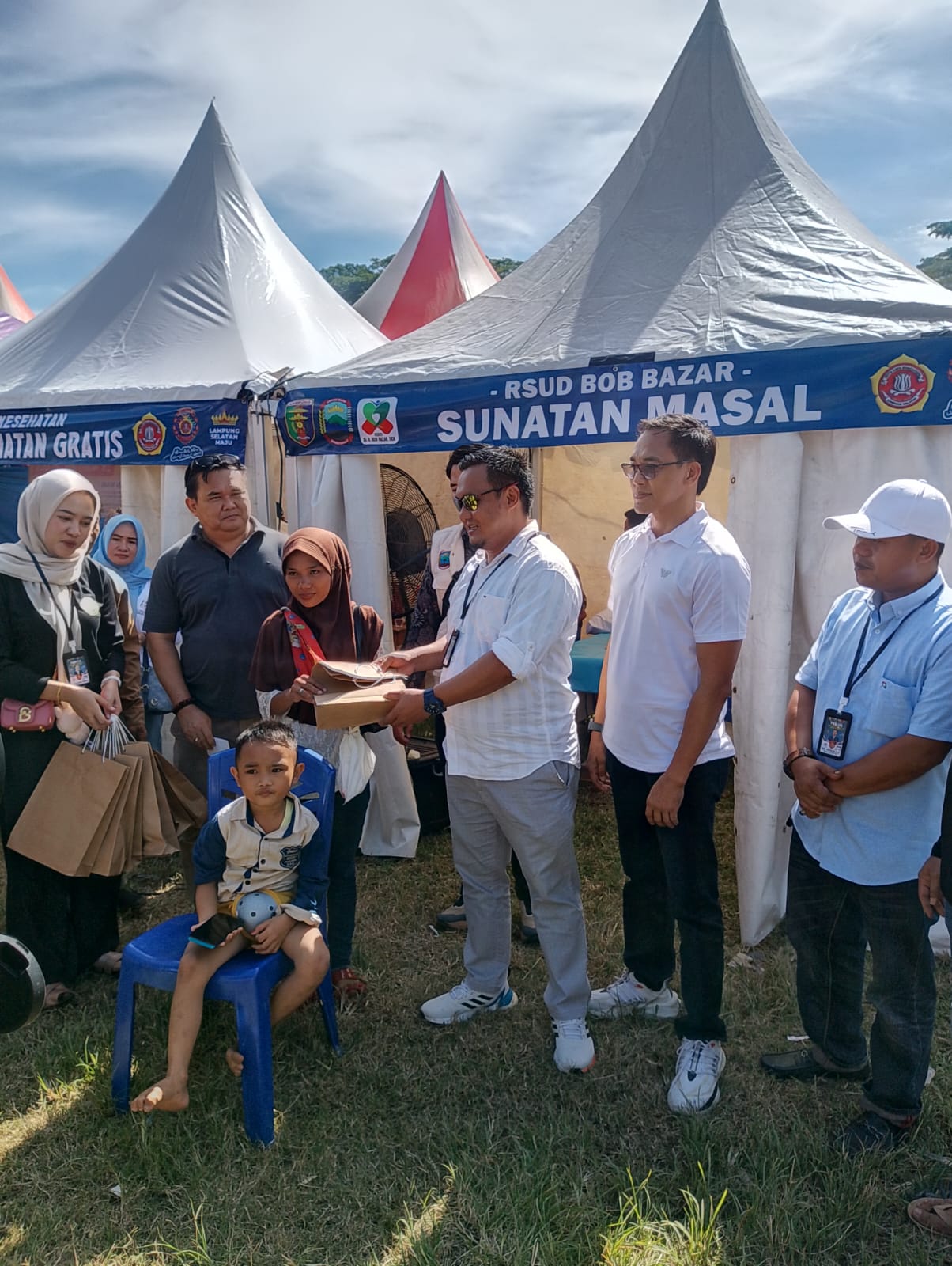 Belasan anak dari berbagai kecamatan di Lampung Selatan tampak antusias mengikuti sunatan massal yang digelar oleh Karang Taruna bekerja sama dengan RSUD Bob Bazar, SKM Kalianda.