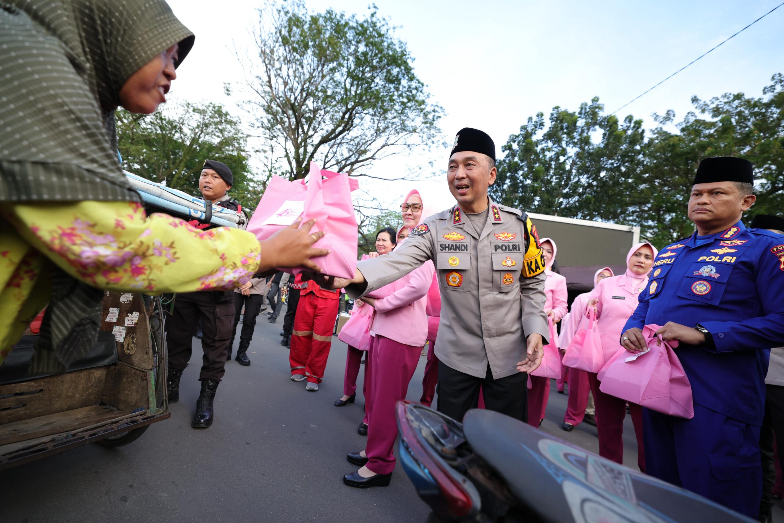 BERBAGI BERKAH RAMADHAN, KAPOLDA SUMSEL IRJEN POL SANDI NUGROHO DAN BHAYANGKARI SAPA PENGENDARA DI SIMPANG 5 DPRD