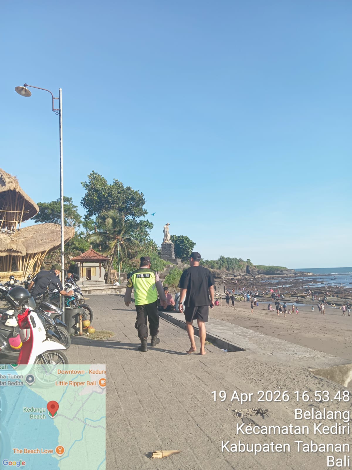 Seijin Kapolres Tabanan AKBP I Putu Bayu Pati, S.I.K., M.H., melalui Kapolsek Kediri Kompol Putu Budiawan agar bhabinkamtibmas selalu hadir di tengah-tengah masyarakat, terlebih lagi dengan adanya suatu event atau kegiatan kemasyarakatan yang melibatkan orang banyak, Bhabinkamtibmas Desa Belalang Aiptu I Wayan Suparwa melakukan pengamanan dan memberikan himbauan Kamtibmas kepada para pengunjung Pantai Kedungu, Desa Belalang, Kecamatan Kediri Kabupaten Tabanan untuk selalu berhati-hati dan waspada terhadap situasi yang cukup ekstrim yang kadang-kadang mendadak hujan dan juga ombak laut yang cukup tinggi dan juga disampaikan apabila ada permasalahan/ kejadian dapat menghubungi pelayan polri yang melalui call center 110 polri.