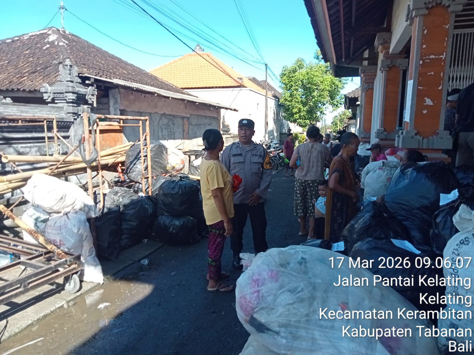 Polsek Kerambitan, Minggu 08 Maret 2026; Bhabinkamtibmas Desa Kelating Aipda I Wayan Subandi Yasa melaksanakan Pengamanan Kegiatan Plastic For Rice yang diselenggarakan oleh Soori Bali bertempat di Desa Kelating Kecamatan Kerambitan.