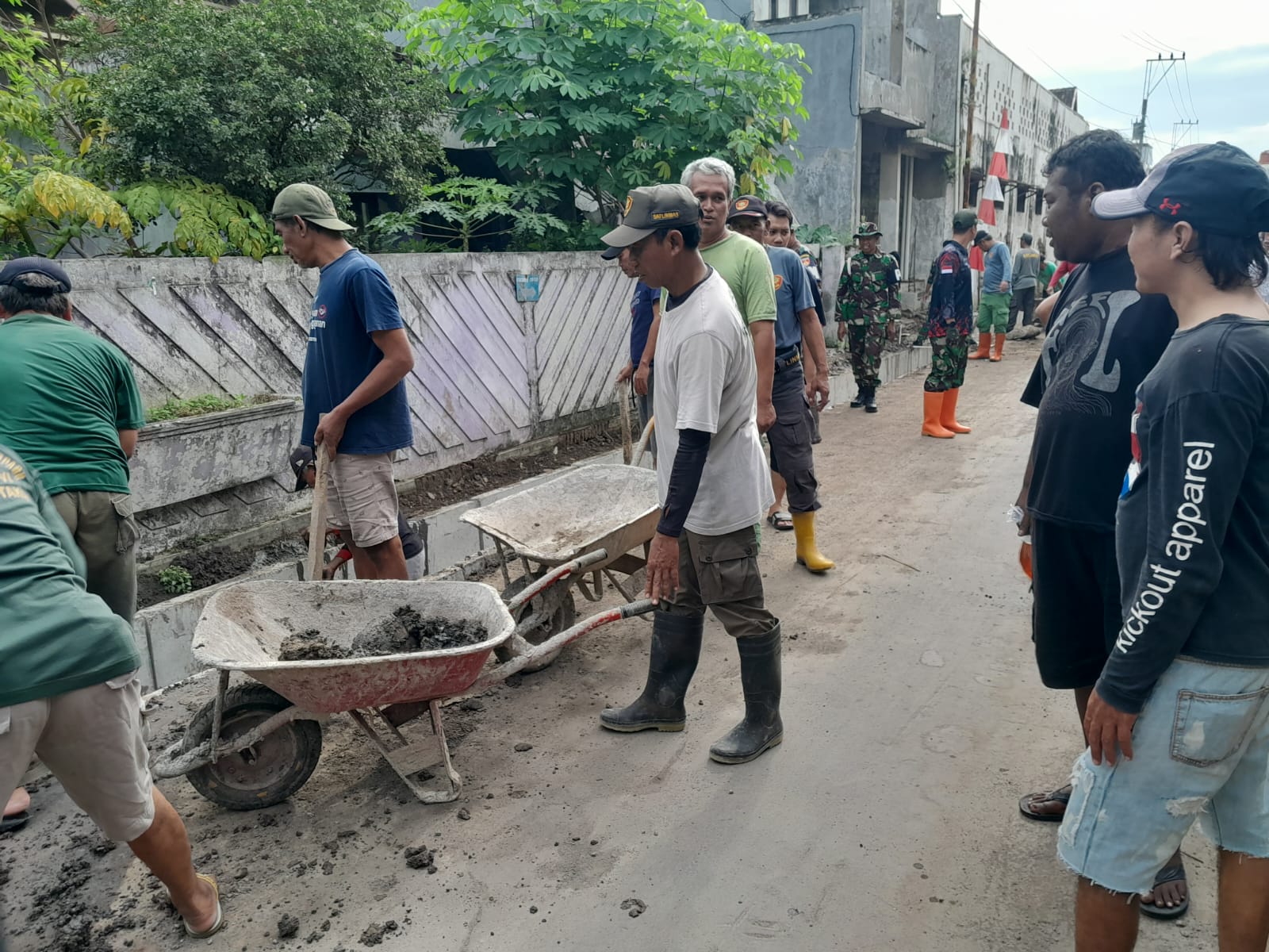 Kondisi cuaca yang panas serta pelaksanaan ibadah puasa tidak menyurutkan ritme kerja anggota Satgas bersama masyarakat setempat. Teriknya matahari justru dijawab dengan semangat gotong royong yang semakin erat demi mengejar target penyelesaian sesuai waktu yang telah ditentukan.