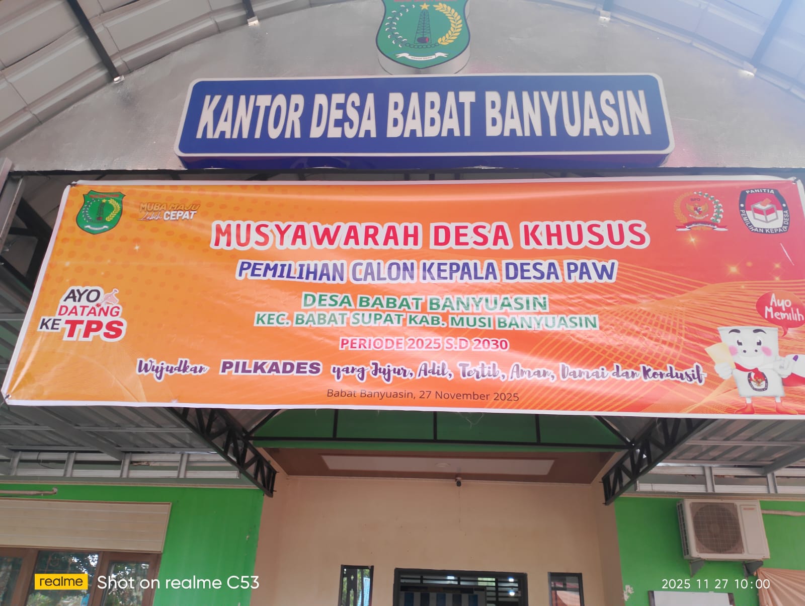 Pemilihan calon Kepala desa atau PAW Kepala desa babat Banyuasin periode 2025-2030 yang dilaksanakan di kantor desa babat banyuasin kecamatan babat supat kabupaten Musi Banyuasin,Kamis(27/11).