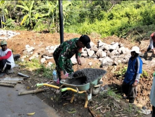 Babinsa Serda Supriyadi mengatakan bahwa, pelaksanaan karya bakti bersama masyarakat ini merupakan salah satu wujud nyata dan peran aktif serta sumbangsih TNI khususnya aparat kewilayahan kepada rakyat di daerah, sehingga kemanunggalan TNI-Rakyat tetap terjaga.