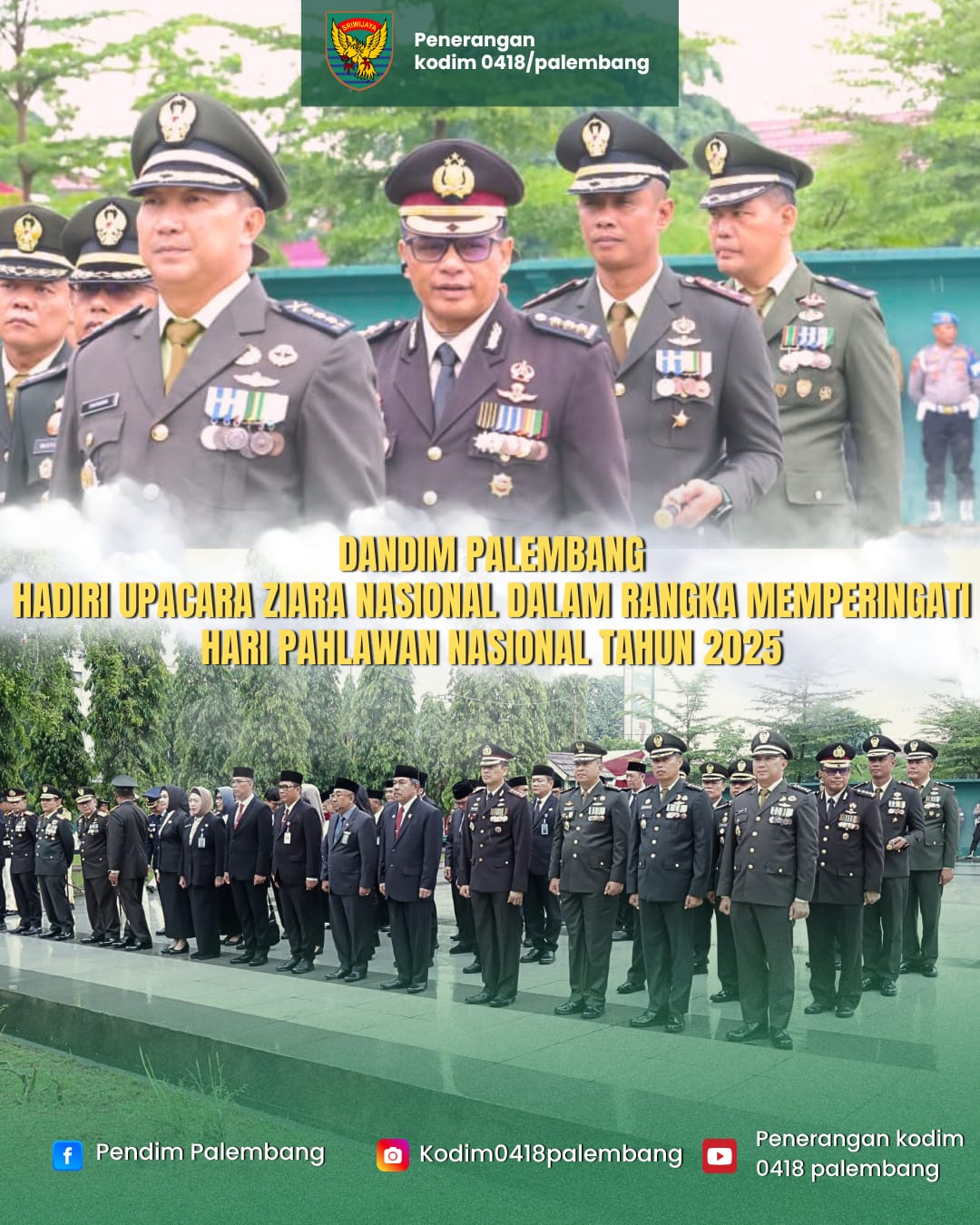 Dalam rangka memperingati Hari Pahlawan Nasional Tahun 2025, TNI, Polri, dan unsur Forkopimda Sumatera Selatan melaksanakan kegiatan Ziarah Nasional di Taman Makam Pahlawan Ksatria Ksetra Siguntang, Jalan Jenderal Sudirman KM 3,5 Palembang, Senin (10/11/2025) pagi.