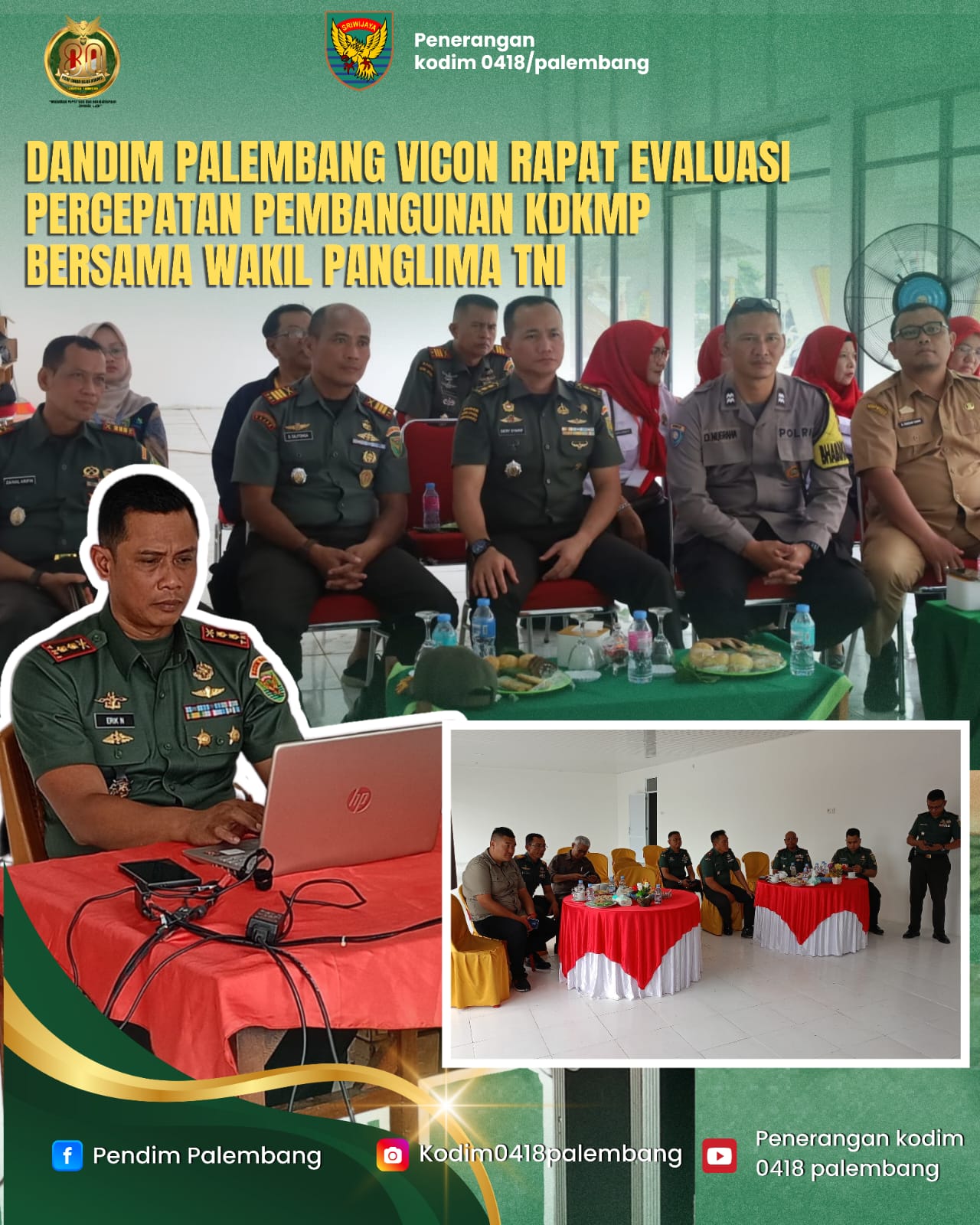 Dandim 0418/Palembang Letkol Arh Erik Novianto, S.Sos., mengikuti rapat Evaluasi Percepatan Pembangunan KDKMP Secara Daring Melalui Video Conference (Vicon) Bersama Wakil Panglima TNI dan Jajaran terkait.