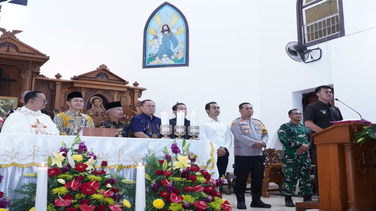 Komandan Kodim 0808/Blitar Letkol Inf Virlani Arudyawan bersama Jajaran Forkopimda kota Blitar melakukan monitoring ke sejumlah Gereja dan Pos Pengamanan pada malam Natal, Rabu malam (24/12/2025). Guna memastikan perayaan Natal dan pelaksanaan ibadah menyambut Hari Raya Natal berjalan aman dan nyaman, Kamis (25/12/2025).