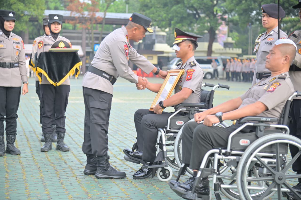 Kepolisian Daerah Jawa Barat (Polda Jabar) menggelar upacara laporan kenaikan pangkat luar biasa (KPLB) bagi empat anggotanya yang telah menunjukkan dedikasi, keberanian, serta pengorbanan saat melaksanakan tugas pengamanan aksi unjuk rasa di wilayah hukum Polda Jabar. Kenaikan pangkat ini diberikan berdasarkan Surat Telegram Kapolri ST/1192/IX/KEP./2025 sebagai bentuk penghargaan negara atas jasa mereka.
