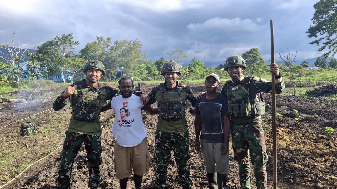 Komandan Satgas Yonif 521/DY Letkol Inf Rahadyan Surya Murdata,S.E,M.I.P, TNI aktif terlibat dalam kegiatan gotong royong bersama masyarakat Papua untuk membuka dan mengolah lahan pertanian dalam rangka mendukung program ketahanan pangan nasional dan swasembada pangan daerah.