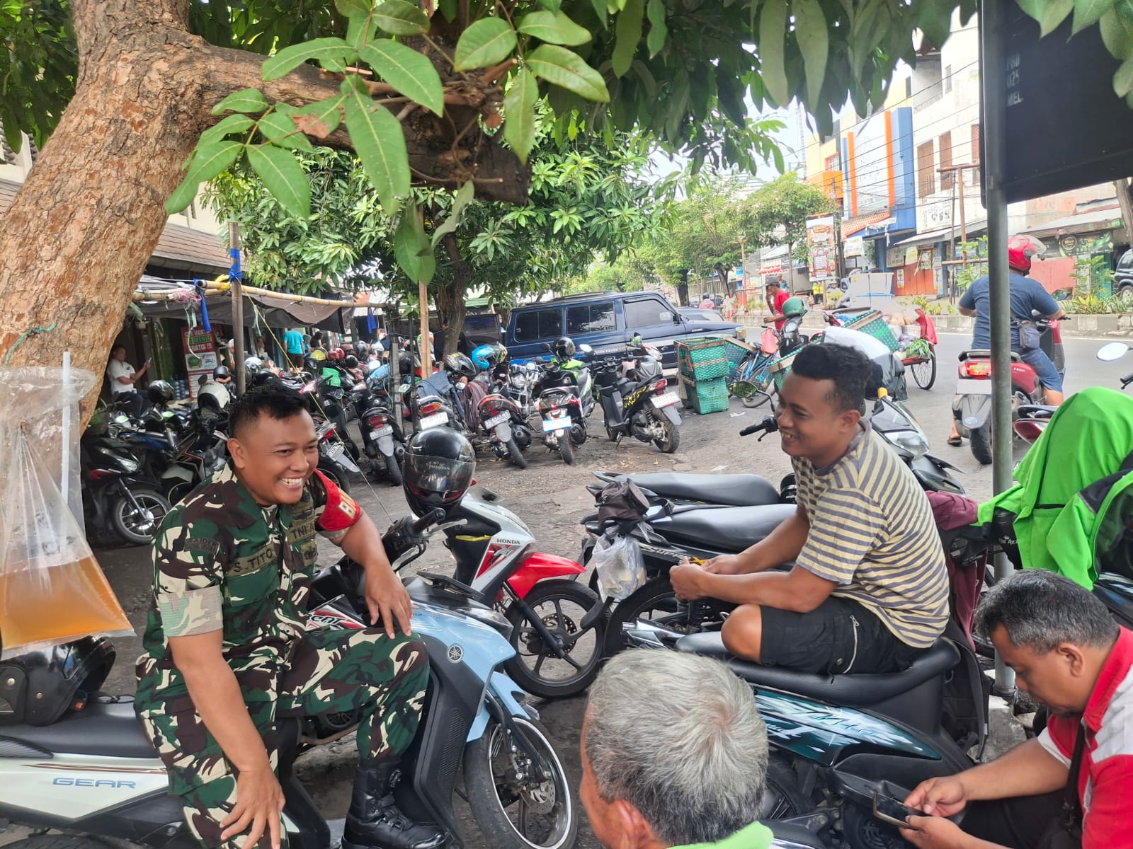 Babinsa Danukusuman Koramil 03/Serengan Kodim 0735 Surakarta Serda Tito melaksanakan Komsos dengan Bpk. Suryo di Halaman Pasar Harjodaksino Danukusuman Serengan Kota Surakarta, Senin pukul 09.00 Wib (03/11/2025)