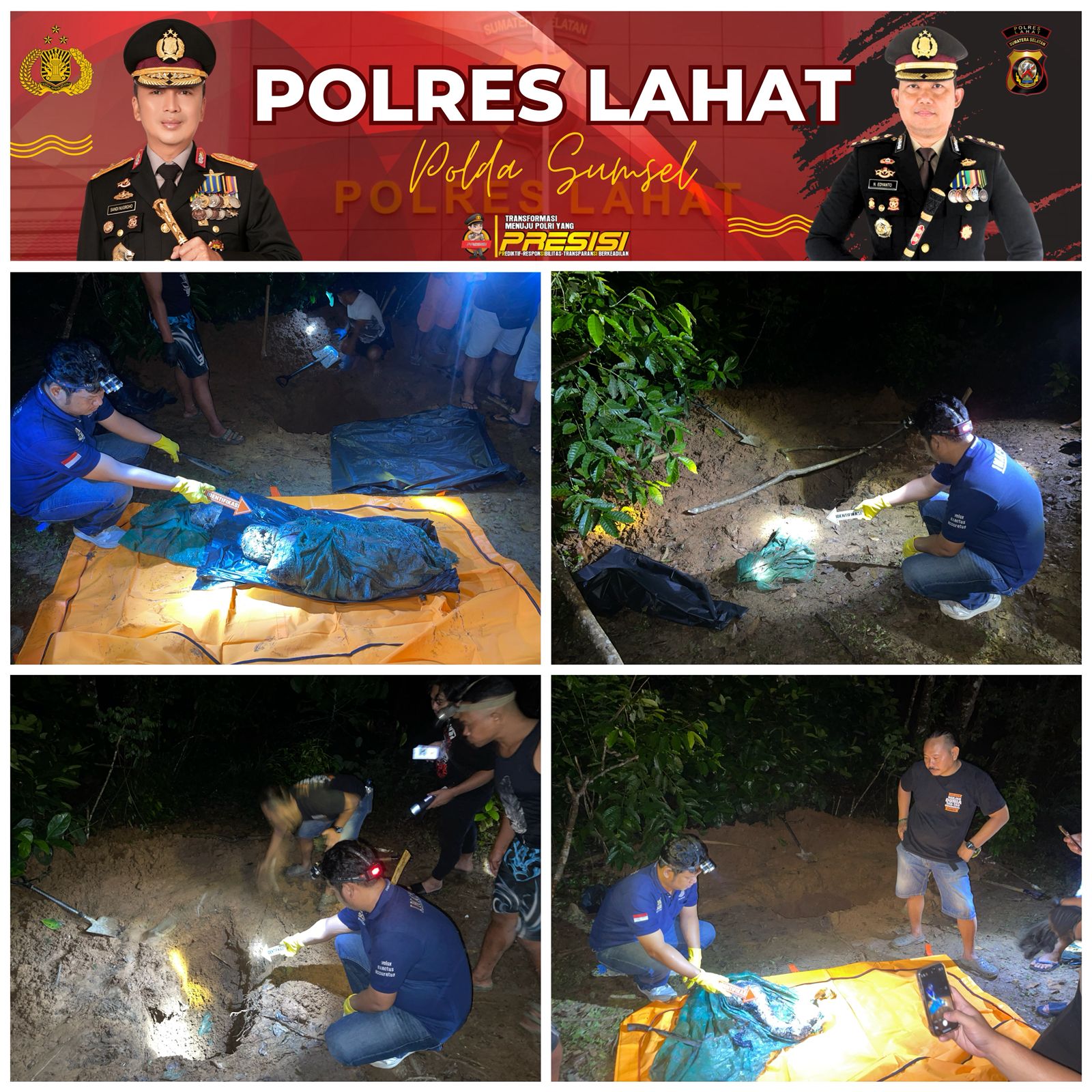 Temuan mengerikan tersebut langsung dilaporkan ke pihak kepolisian. Petugas dari Polres Lahat segera mendatangi lokasi, melakukan olah tempat kejadian perkara (TKP), serta mengevakuasi jenazah korban.