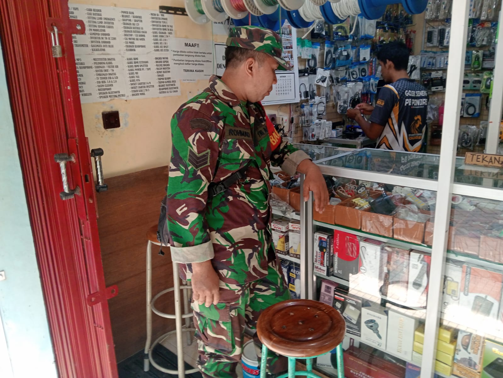 Dalam rangka melaksanakan Pembinaan Teritorial (Binter) di wilayah binaan, Babinsa Jayengan Koramil 03/Serengan Kodim 0735/Surakarta Serka Rohmad datangi dan memberi motivasi Bapak Giyanto selaku pelaku UMKM yang keseharian berjualan alat-alat elektronik yang berada di Jl. Kalilaranagn Jayengan Serengan Kota Surakarta, (27/10/2025)