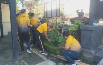 Polsek Kerambitan, Jumat 16 April 2026; Personel Polsek Kerambitan dan Bhayangkari Ranting Kerambitan gelar Olahraga bersama di Halaman Mako Polsek Kerambitan.