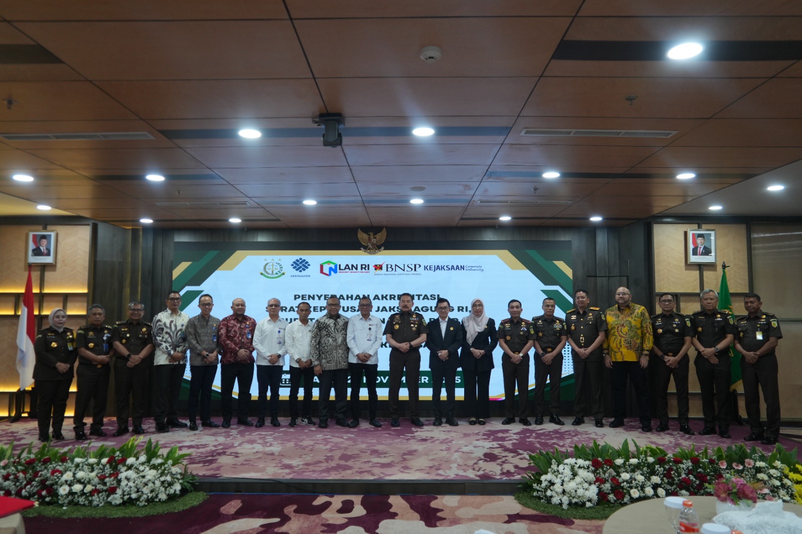 Adapun Lembaga Administrasi Negara (LAN) telah merampungkan Penilaian Akhir Akreditasi Pusdiklat Manajemen dan Kepemimpinan Badan Diklat Kejaksaan yang dilaksanakan pada tanggal 13 November 2025.