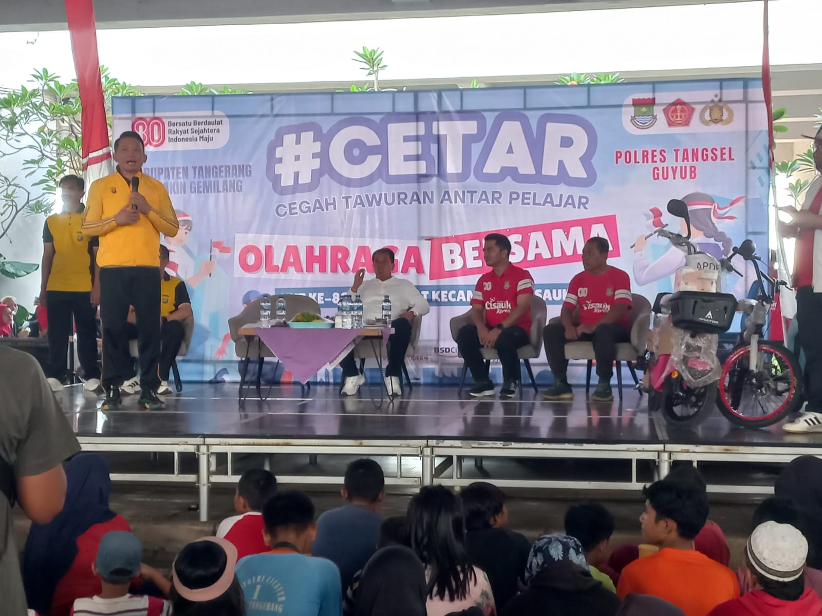 Sabtu, 02 Agustus 2025 JALAN SEHAT dilanjutkan dengan GIAT SOSIALISASI CETAR (CEGAH TAWURAN ANTAR PELAJAR) wilayah hukum Resor Metro Tangerang Selatan yang diadakan oleh sektor cisauk bertempat di intermoda bsd serpong tangerang selatan.