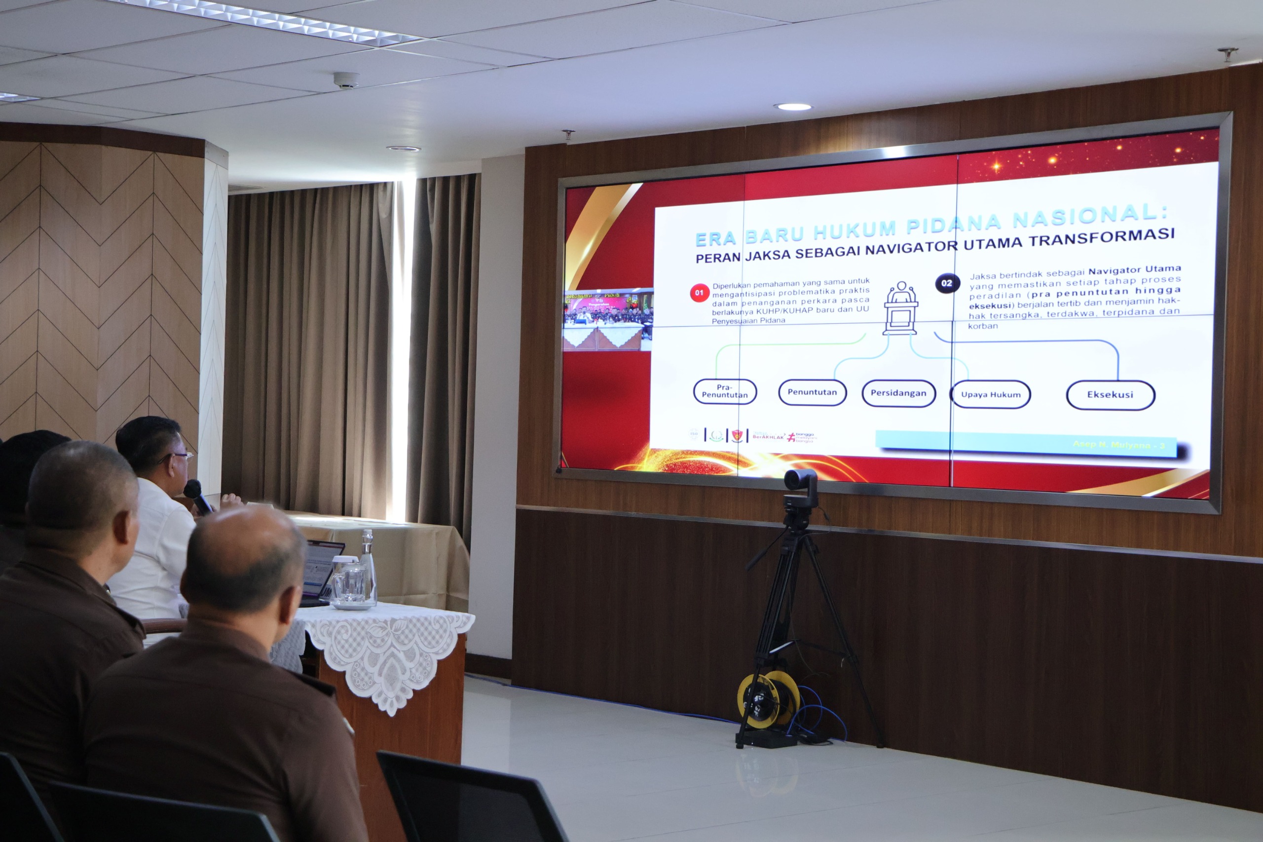Dalam arahannya, Jampidum menegaskan bahwa di era baru hukum pidana nasional, Jaksa harus berperan sebagai Navigator Utama Transformasi. Jaksa bertanggung jawab memastikan seluruh tahapan proses peradilan, mulai dari pra-penuntutan hingga eksekusi, berjalan tertib sesuai aturan baru seraya tetap menjamin hak-hak tersangka, terdakwa, terpidana, dan juga korban.