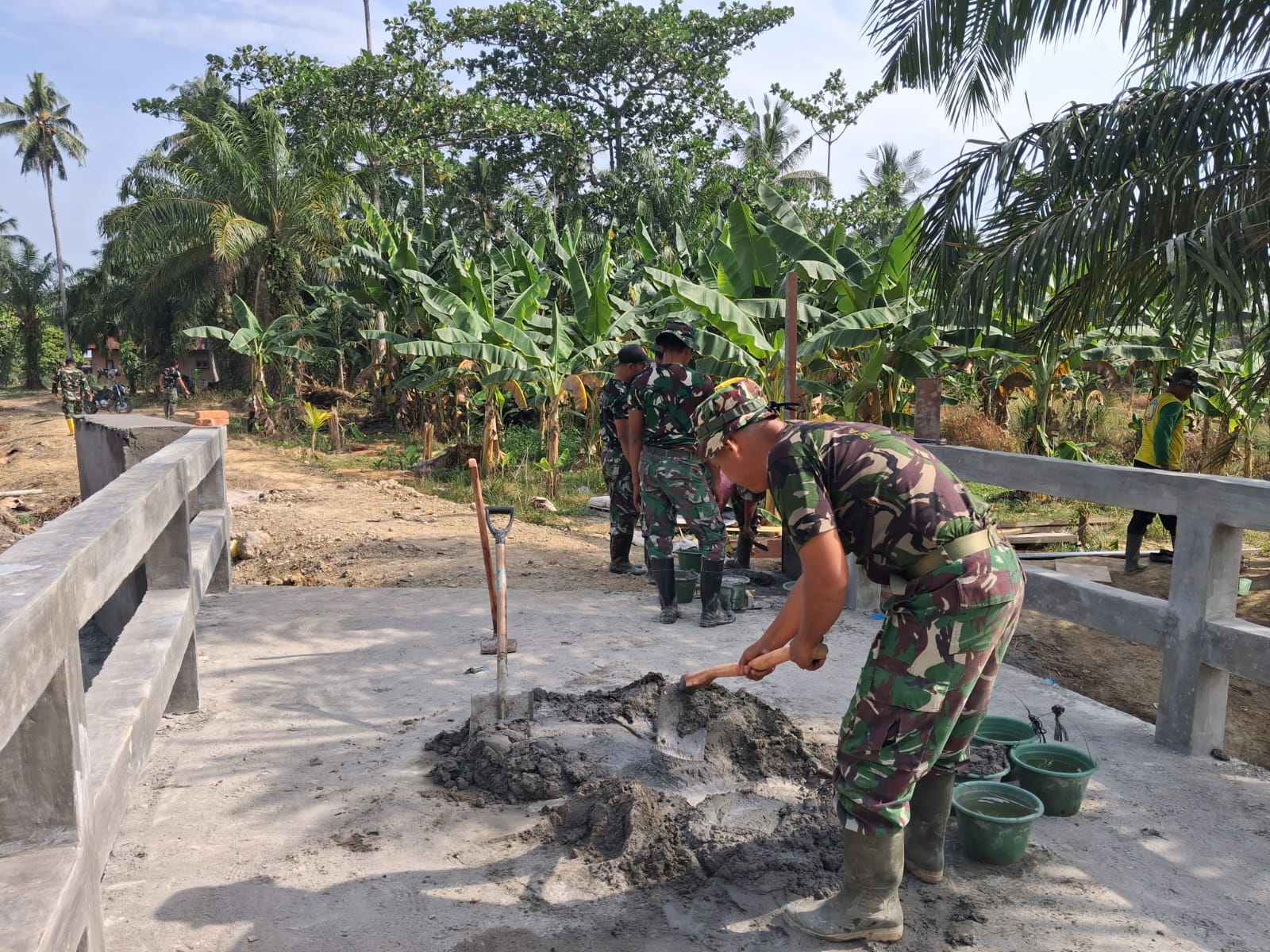 Dansatgas TMMD ke-128, Letkol Inf Medwin Sangkakala, menyampaikan bahwa pembangunan jembatan tersebut hampir rampung berkat kerja sama semua pihak.