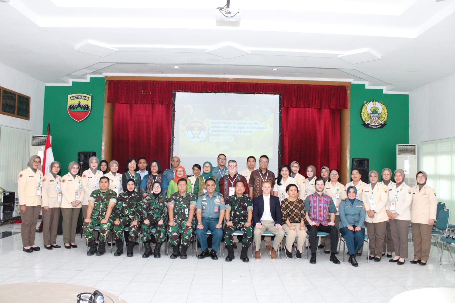 Kepala Pusat Kesehatan (Kapuskes) TNI Mayjen TNI dr. Hadi Juanda, Sp. PD., M.A.R.S., CFRA. diwakili oleh Kaunit Kermabaktikes Puskes TNI Kolonel Laut (K) Dr. dr. Hisnindarsyah, S.E., M.Kes., M.H., Sp.K.L., CFEM., Subsp.K.T.(K)., FISQua., membuka Pelatihan Intermediate Biosafety Biosecurity And Biorisk Management Training.Bertempat di Aula Bawah Rumah Sakit Tk. II Putri Hijau Kesdam I/BB, Medan, Sumatera Utara, Senin (2/2/2026).