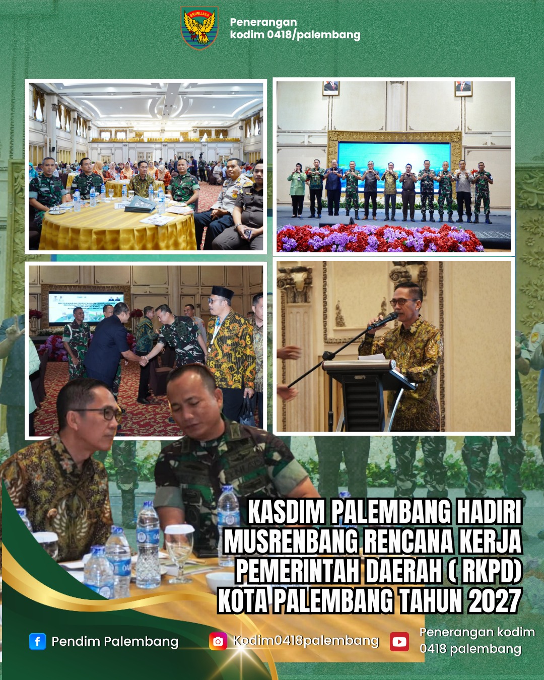 Kepala Staf Kodim (Kasdim) 0418/Palembang Letkol Inf Dery Septriandi, ST., M.M., M.Han mewakili Dandim menghadiri kegiatan Musyawarah Perencanaan Pembangunan (Musrenbang) Rencana Kerja Pemerintah Daerah (RKPD) Kota Palembang Tahun 2027. Kamis (2/4/2026)