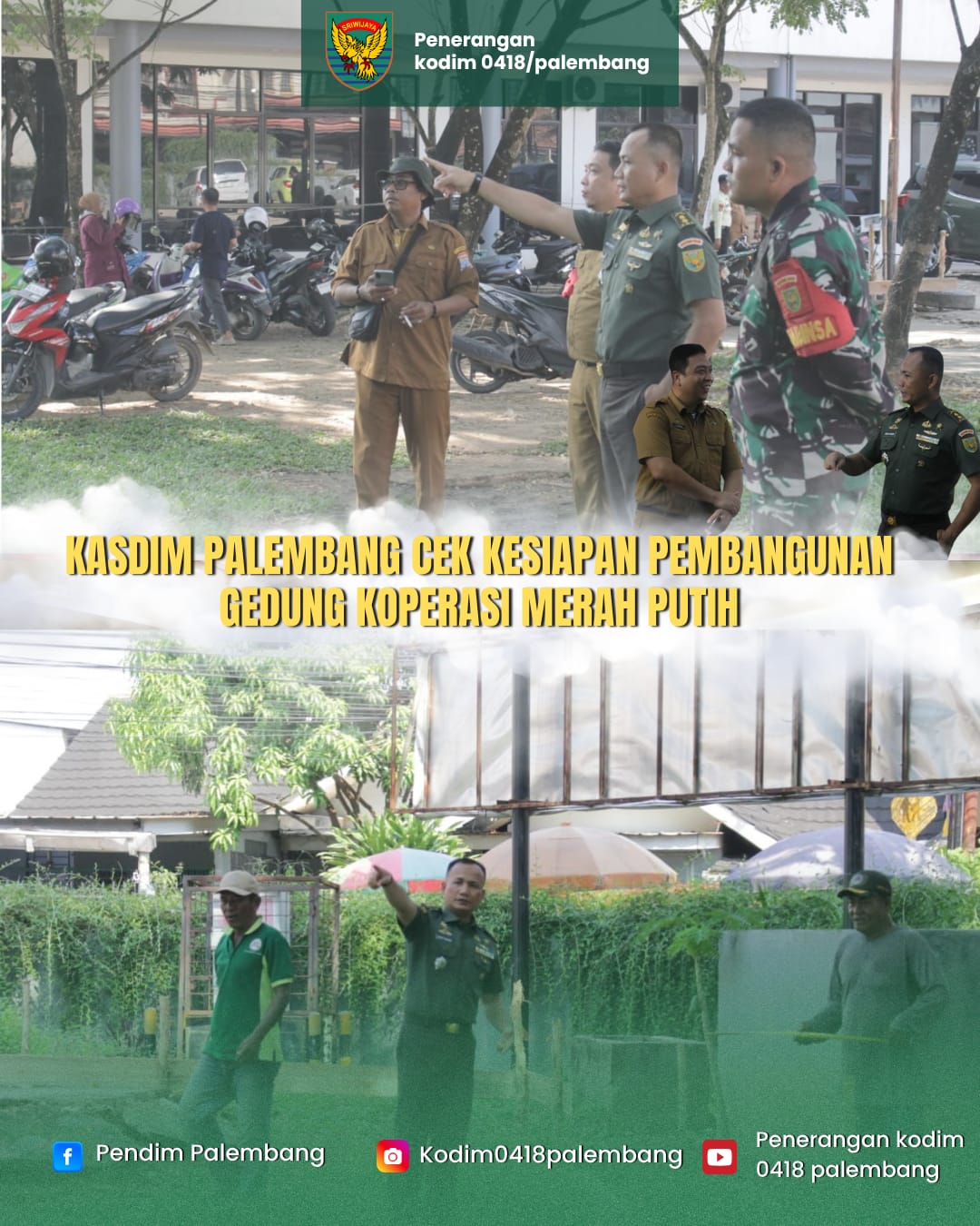 Komando Distrik Militer (Kodim) 0418/Palembang melalui Kepala Staf Kodim (Kasdim) Letkol Inf Dery Septriandi, ST., M.M., M.Han. meninjau langsung kesiapan pembangunan Gedung Koperasi Merah Putih di wilayah Kota Palembang, Selas (04/11/2025).