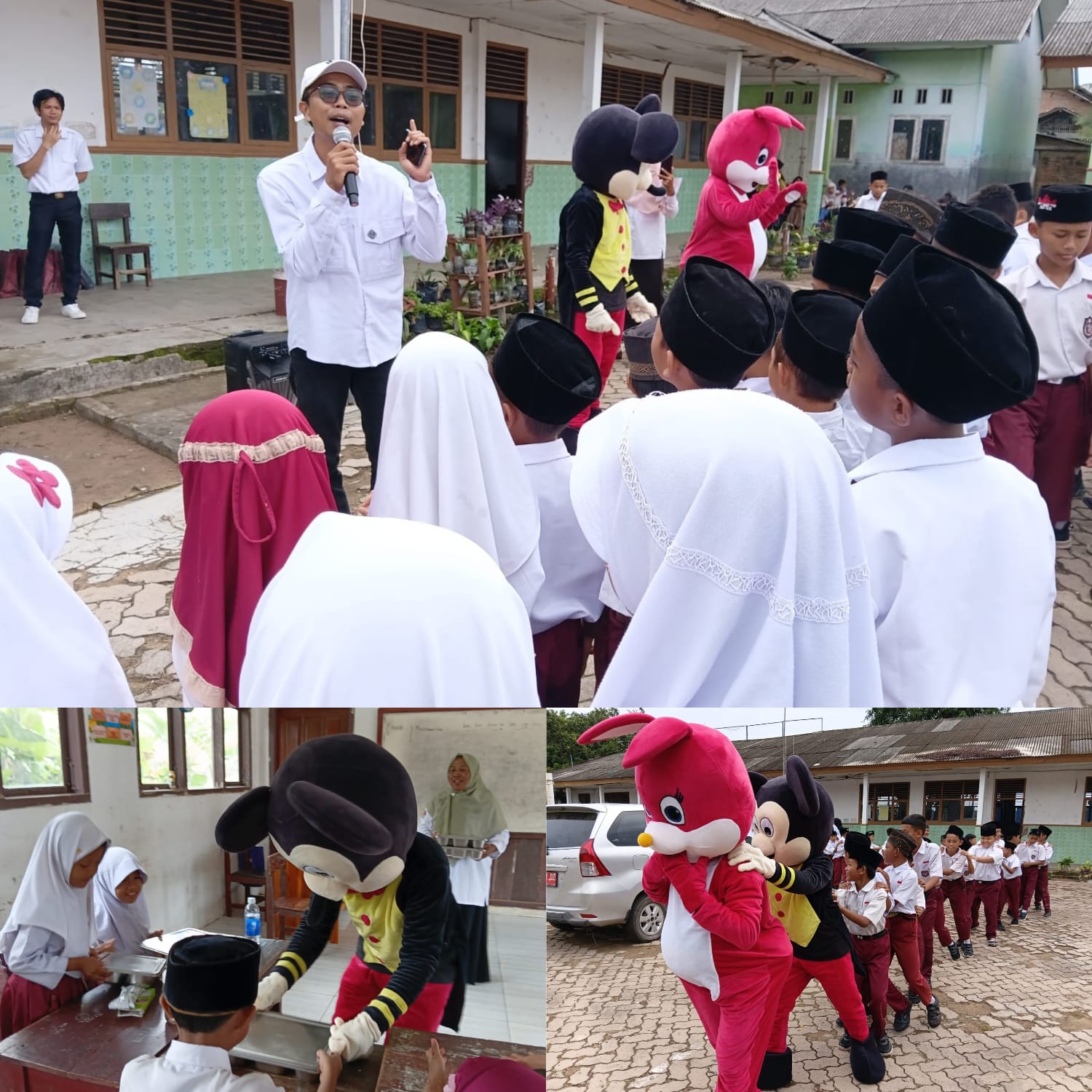Ratusan murid MI Islamiah Bumijaya, Kecamatan Candipuro, Lampung Selatan, terlihat sangat antusias saat bertemu dengan karakter Disney di sekolah mereka.