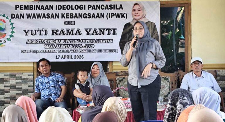 Ketua Komisi 3 DPRD Lampung Selatan Yuti Rama Yanti menggelar Pembinaan Idiologi Pancasila dan Wawasan Kebangsaan (IPWK) didesa Sukamaju Kecamatan Sidomulyo Kabupaten Lampung Selatan, Jumat (17/4/2026).
