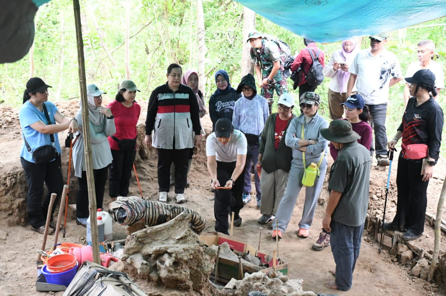 Setibanya di lokasi, Ny. Uli Simanjuntak berdialog dengan tim ekskavasi dari Museum Geologi Bandung yang dibantu oleh Dinas Kepemudaan, Olahraga, Kebudayaan, dan Pariwisata (Disporabudpar) Nganjuk, serta komunitas Kota Sejuk Nganjuk.