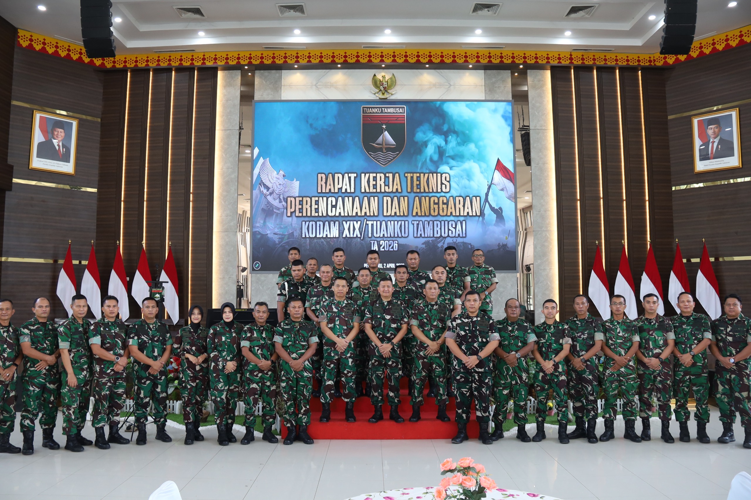Kodam XIX/Tuanku Tambusai menggelar Rapat Kerja Teknis Bidang Perencanaan dan Anggaran yang berlangsung dengan tertib dan penuh khidmat. Kegiatan ini secara resmi dibuka oleh Asisten Perencanaan Kodam XIX/Tuanku Tambusai, Kolonel Arh Antonius Andre Wira K., S.AP., M.Si., serta diikuti oleh seluruh pejabat yang membidangi perencanaan satuan kerja (Satker) dan perbendaharaan di lingkungan Kodam.Kamis 2/4/26.