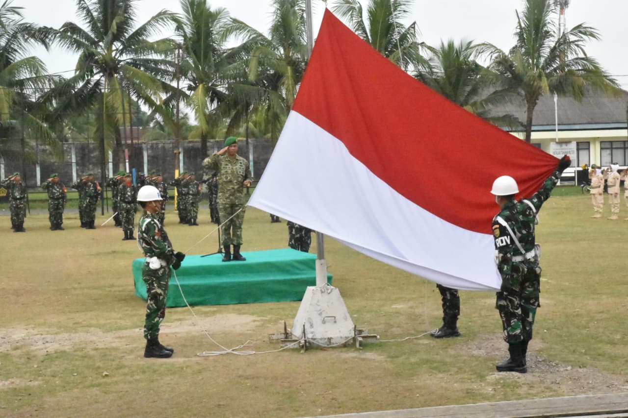 Bertindak sebagai inspektur upacara, Dandim 0418/Palembang Letkol Arh Erik Novianto, S.Sos. membacakan amanat PANGLIMA TNI yang menekankan pentingnya menjaga semangat profesionalisme dan pengabdian kepada rakyat.