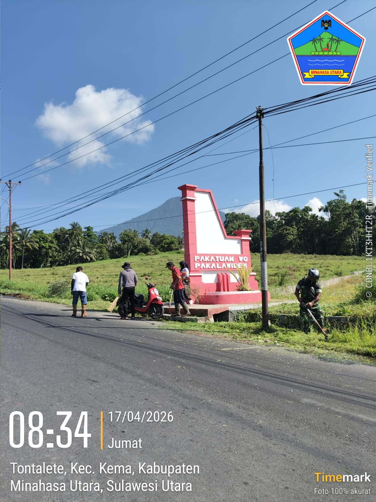 Dalam upaya mendukung program pelestarian lingkungan, Koramil 1310-05/Kauditan Kodim 1310/Bitung, melaksanakan kegiatan karya bakti pembersihan lingkungan dalam rangka Gerakan Indonesia Asri, yang melibatkan personel TNI bersama masyarakat setempat yang dilaksanakan di poros jalan Desa Tontalete Kec. Kema Kab. Minahasa Utara, Jumat (17/04/2026).