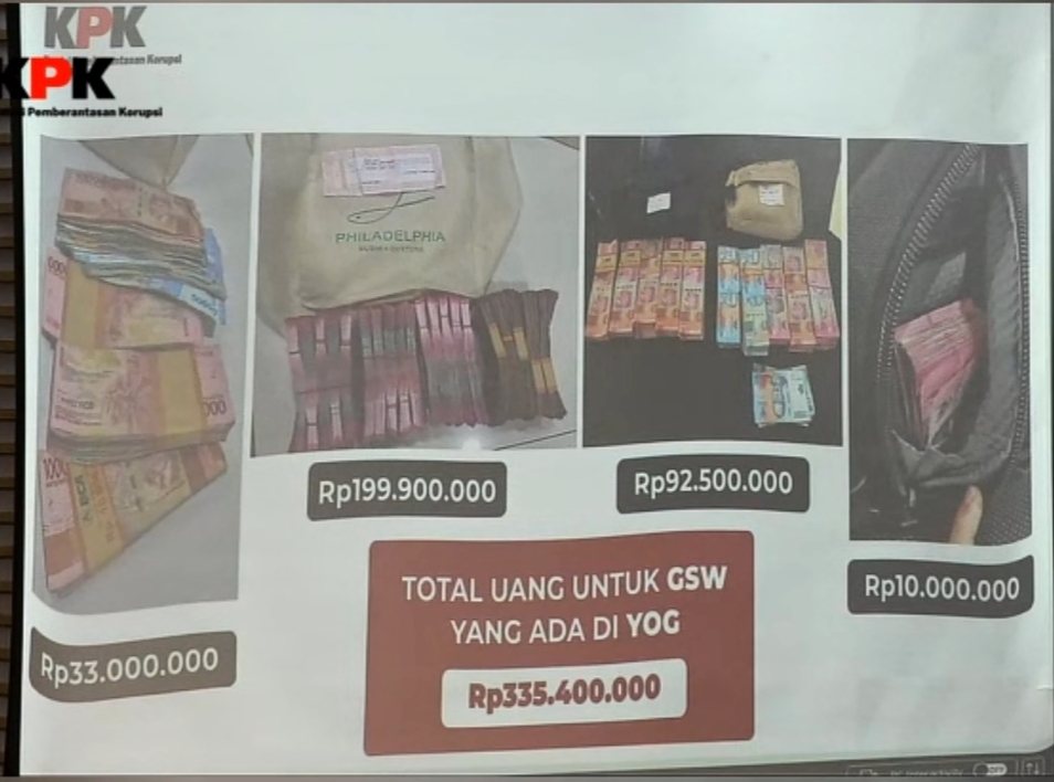 Dalam konferensi pers, KPK menyampaikan telah mengamankan uang tunai sebesar Rp335 juta sebagai barang bukti. Selain itu, turut diamankan sejumlah barang mewah berupa sepatu berbagai merek dengan nilai mencapai ratusan juta rupiah.
