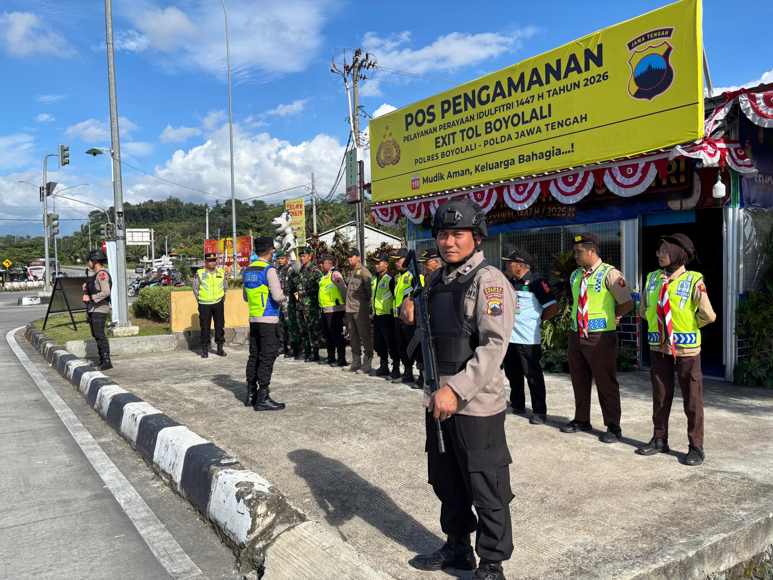 Pelaksanaan Kegiatan Pos Pengamanan (Pos Pam) dalam rangka Operasi Ketupat Candi di Pos Exit Tol Mojosongo pada Kamis, 19 Maret 2026 berlangsung dalam kondisi aman dan terkendali.