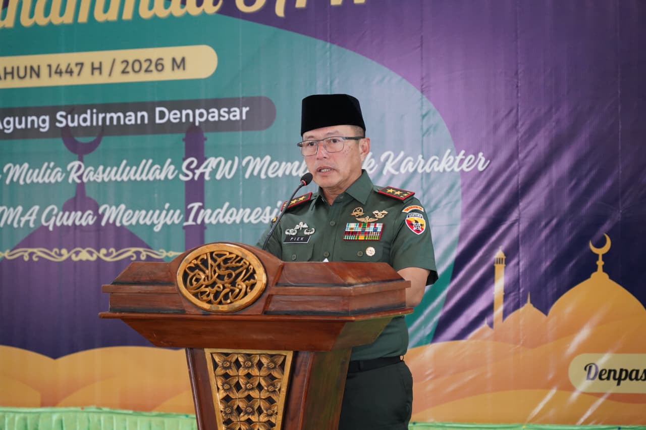 Acara diawali pembacaan ayat suci Al-Qur’an oleh ibu Eri Fitria, S.Pd.I., (anggota Persit Kodam IX/Udayana) peraih Juara I MTQ tingkat Mabes TNI, yang menambah kekhidmatan suasana. Selanjutnya, Pangdam IX/Udayana Mayjen TNI Piek Budyakto dalam sambutannya menegaskan bahwa peringatan Isra Mi’raj bukan sekadar seremonial keagamaan, tetapi sarana membangun karakter prajurit yang berintegritas, profesional, dan berakhlak mulia.