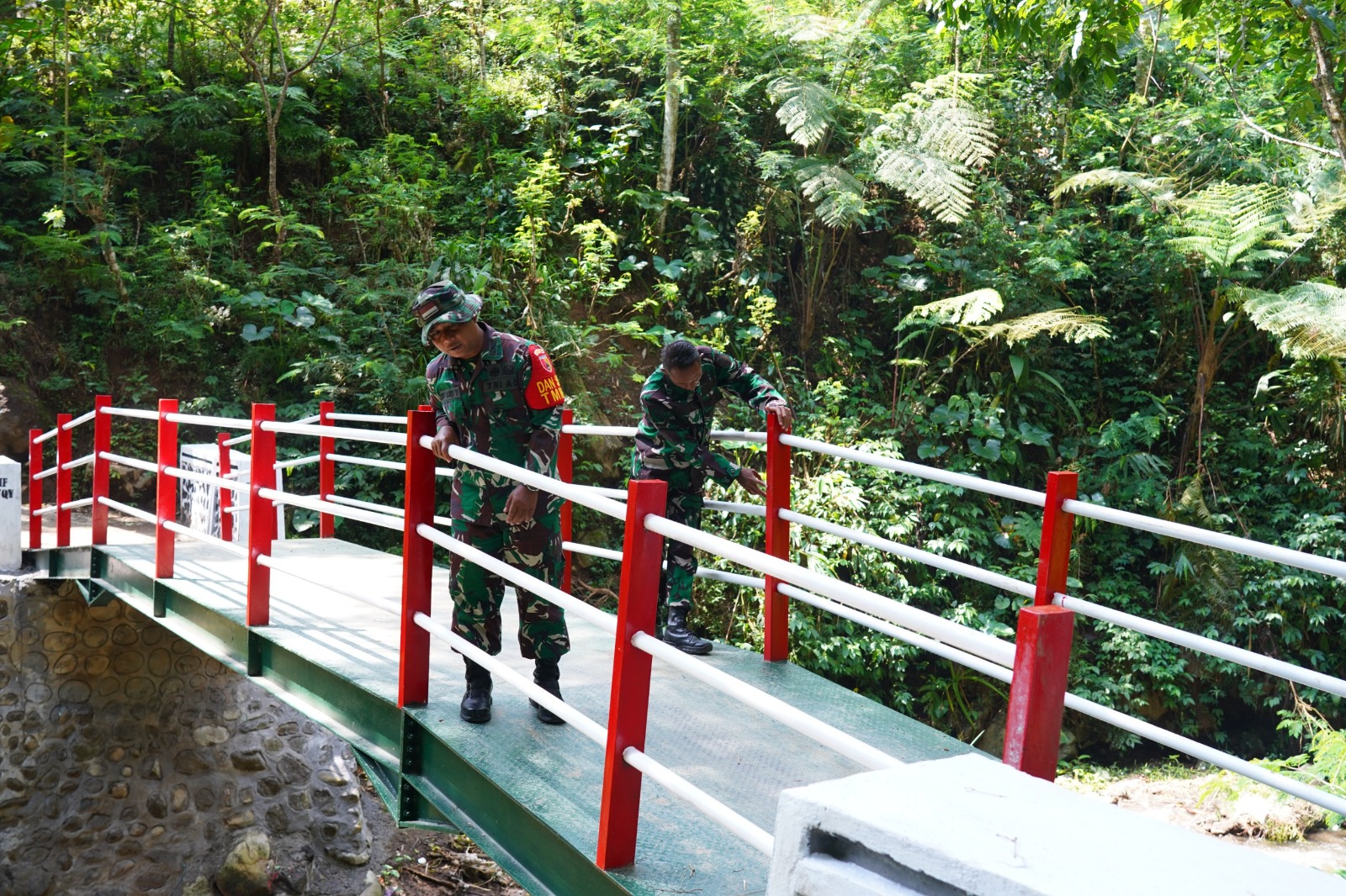 Dalam kegiatan tersebut, Dan SSK Kapten Inf Hendri bersama anggota Satgas TMMD meninjau seluruh bagian jembatan, mulai dari konstruksi utama, lantai jembatan, hingga pagar pengaman yang telah selesai dilakukan pengecatan. Hasil pengecekan menunjukkan bahwa pembangunan Jembatan Merah Putih telah rampung sesuai dengan rencana dan siap digunakan oleh warga.