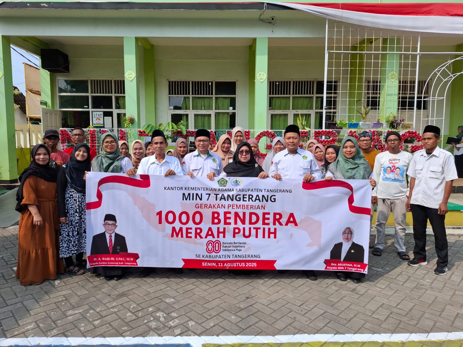 Dalam rangka memperingati Hari Ulang Tahun (HUT) ke-80 Kemerdekaan Republik Indonesia, MIN 7 Tangerang yang berada di bawah naungan Kementerian Agama Kabupaten Tangerang menggelar kegiatan pembagian 1.000 bendera Merah Putih kepada masyarakat. Kegiatan ini dilaksanakan pada Senin, 11 Agustus 2025, di lingkungan madrasah yang berlokasi di Kampung Iwul, RT.001/RW.002, Desa Tobat, Kecamatan Balaraja, Kabupaten Tangerang, Banten.