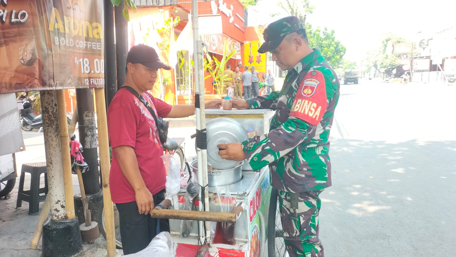 Motivasi Pelaku UMKM, Babinsa Kemlayan Beri Dukungan Kepada Penjual Cilok.