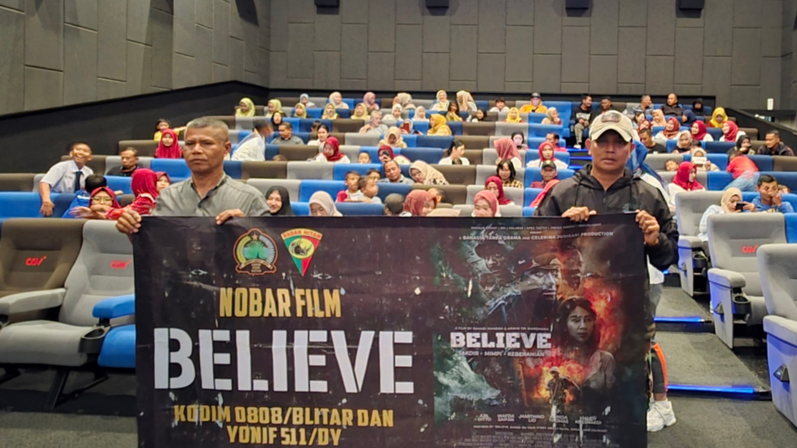 Dalam rangka menanamkan nilai-nilai patriotisme, pengabdian dan kecintaan terhadap Tanah Air, Kodim 0808/Blitar menggelar kegiatan nonton bareng (nobar) film “Believe” bersama anggota Yonif 511/DY, Persit Kartika Chandra Kirana Cabang XXII dan guru-guru TK Kartika Jaya. Acara ini berlangsung di CVG Cinemas Blitar Town Square (BLITOS) Jl. Merdeka Kelurahan Kepanjenlor Kecamatan Kepanjenkidul Kota Blitar, Senin (4/8/2025).