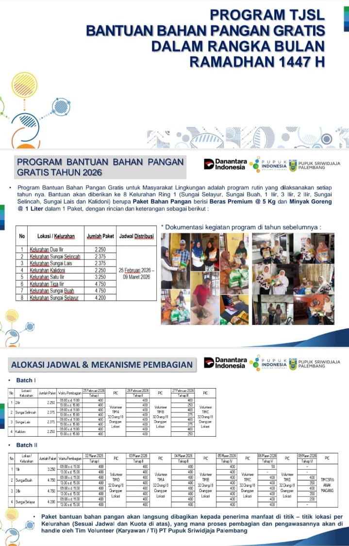 “PUSRI sudah memberikan kuota sebesar 4.750 paket sesuai dengan data yang diajukan. Seharusnya jumlah tersebut cukup untuk didistribusikan,” ujar Raka.