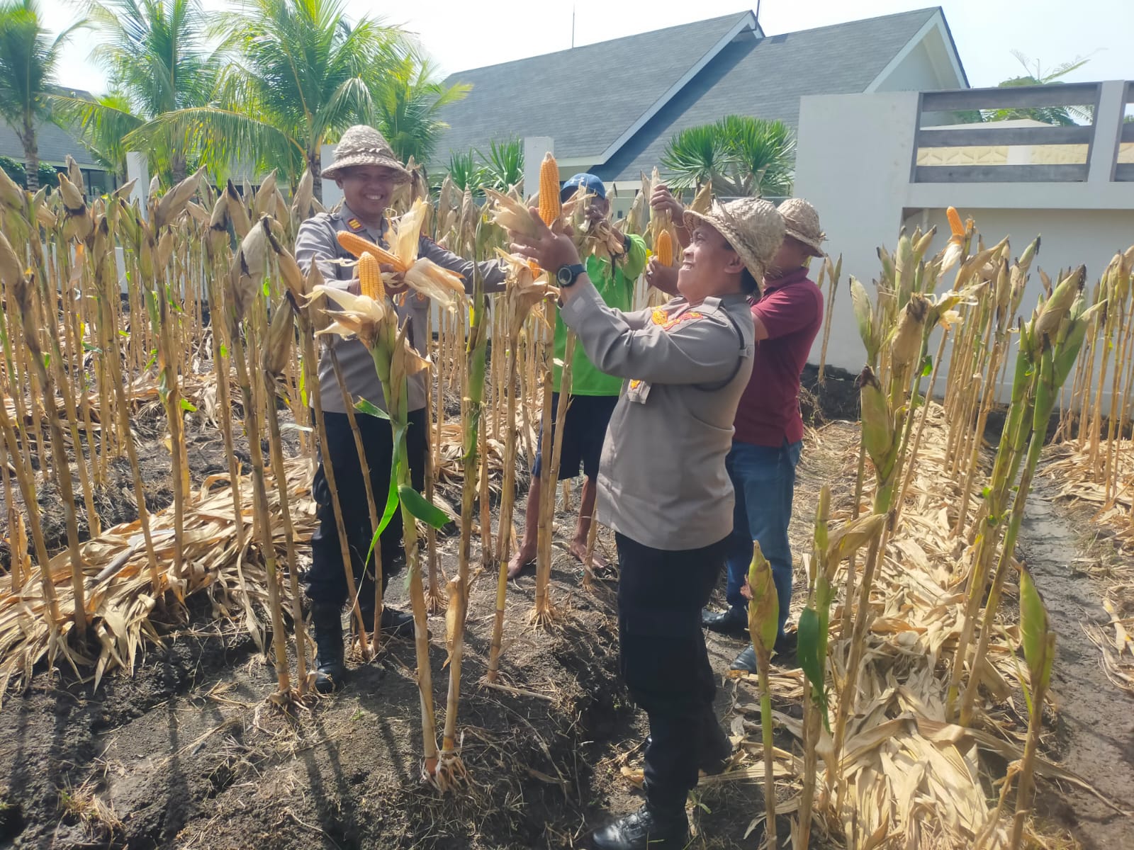 Hari Jumat, 24-04-2026 pukul 10.00-11.00 wita Kapolsek Kediri Kompol Putu Budiawan didampingi Wakapolsek bersama Kanit Intel dan Kanit Propam melaksanakan panen jagung Kwartal I Tahun 2026 di lahan warga binaan Banjar Gamongan, Desa Kaba-kaba, Kediri, Tabanan.