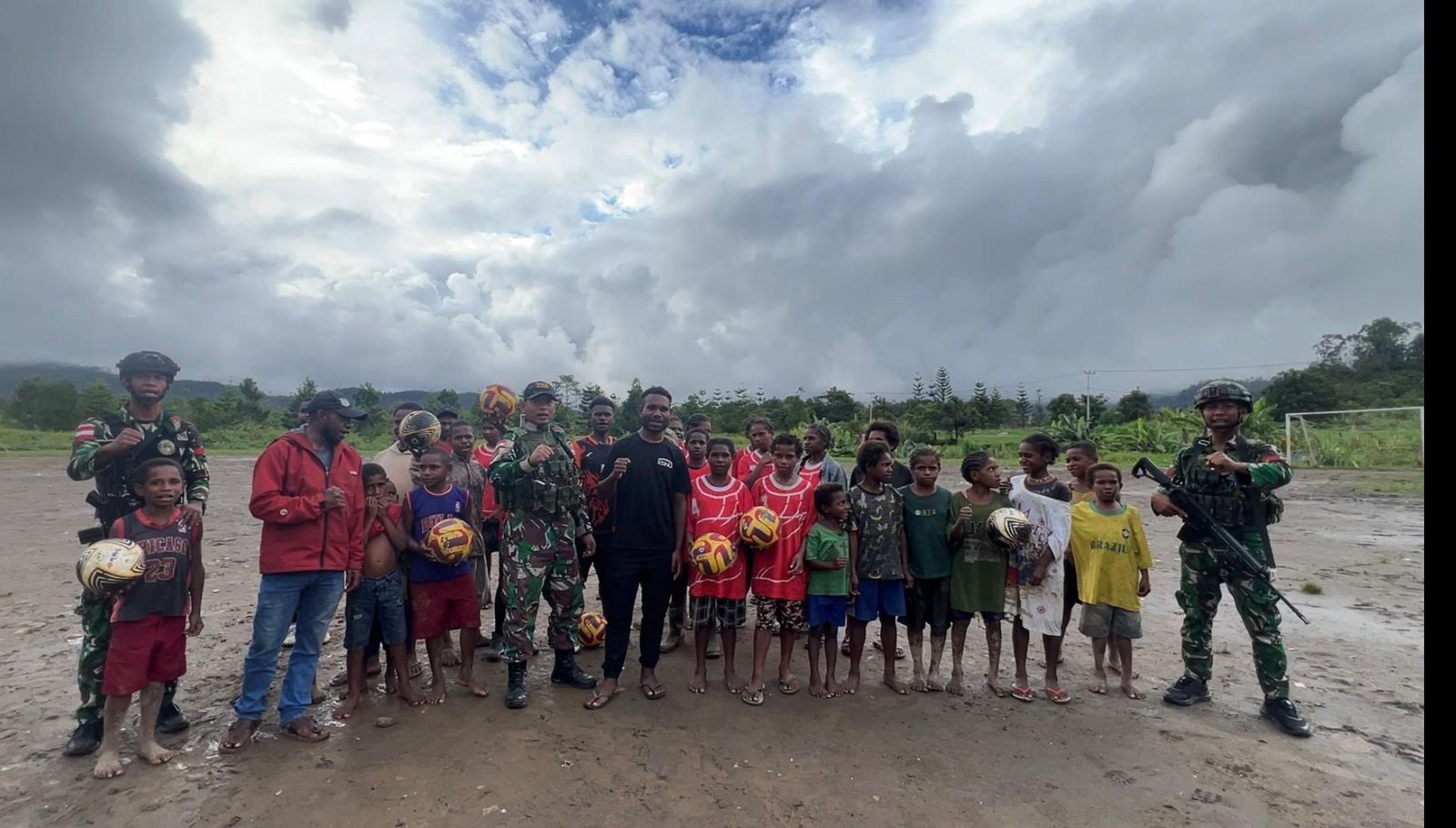 Satgas Yonif 751/Vira Jaya Sakti (VJS) menyalurkan bantuan bola baru dari Pangdam XVII/Cenderawasih kepada jajaran klub sepak bola/SSB di wilayah Pegunungan Bintang. Total sebanyak 60 bola diserahkan sebagai bentuk dukungan pembinaan olahraga dan pembinaan generasi muda di wilayah perbatasan. (Senin, 5/1/2026).